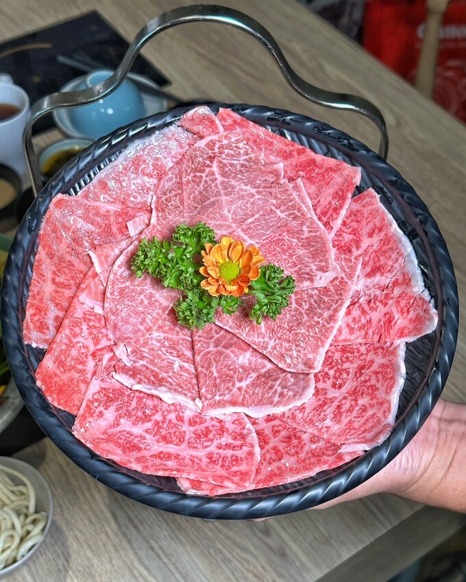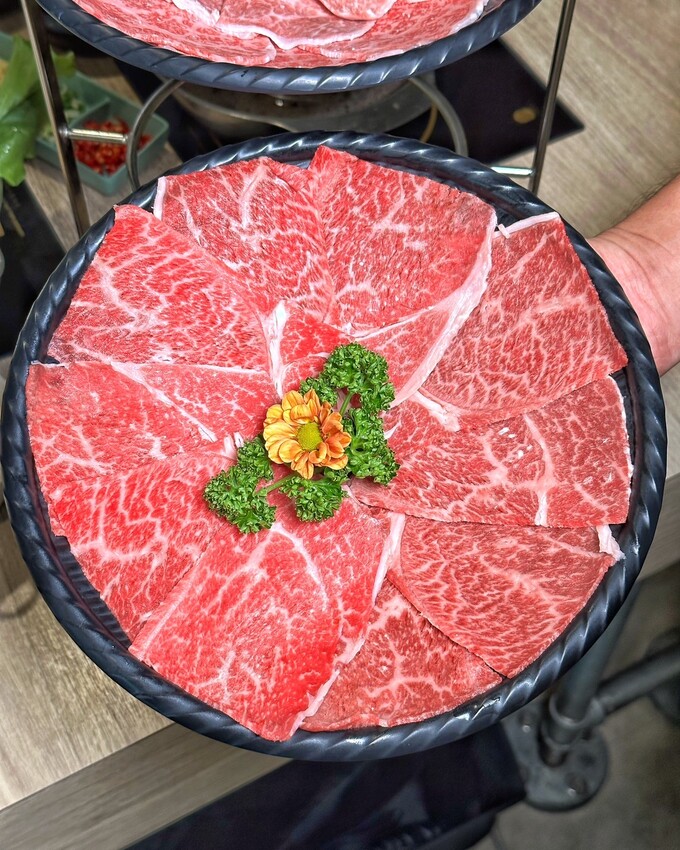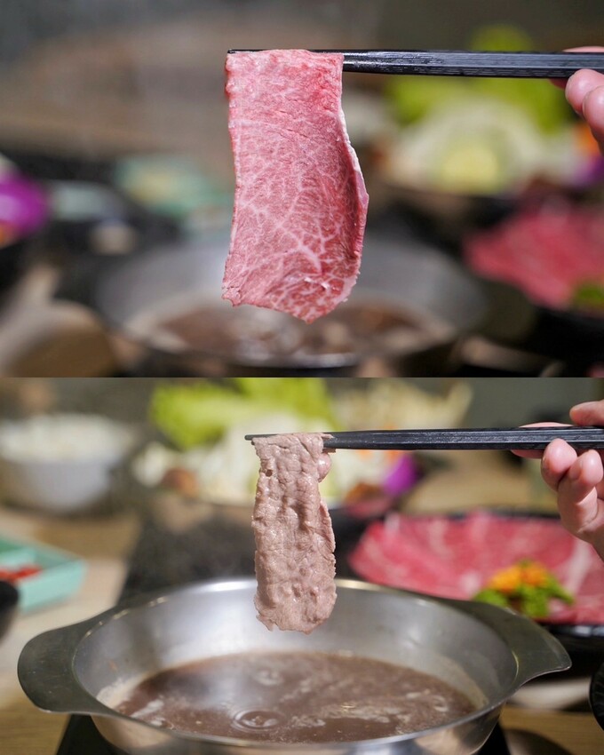 頂級和牛才有這油脂熔點低的特性,還有提供兩種部位,兩種油花都超級美,煮的時候建議在湯頭微滾狀態下,涮至粉紅色澤,即可享用那豐腴油脂帶來的入口即化口感,真的是一場味覺視覺的雙饗宴!記住不要大火下去涮和牛,不然和牛的甜味會流失掉唷!