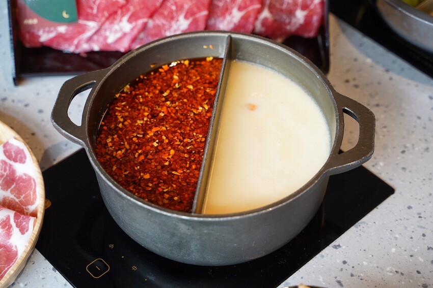 老火川香麻辣湯是主打可以喝的麻辣鍋,讓不嗜辣的朋友也能嘗試。牛奶南瓜湯越煮越濃郁香甜,煮菜、涮肉都很適合。