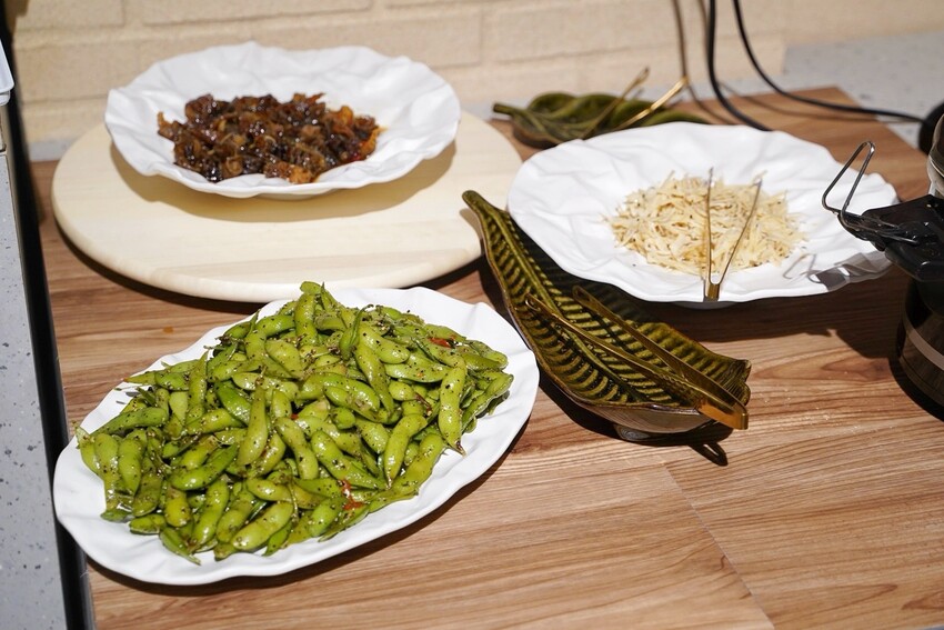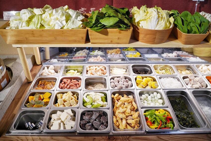 自助蔬食區有將近40種蔬菜火鍋料、麵食,選擇上相當豐富,比較特別的是有提供藜麥飯,可以搭配主廚滷肉一起享用!