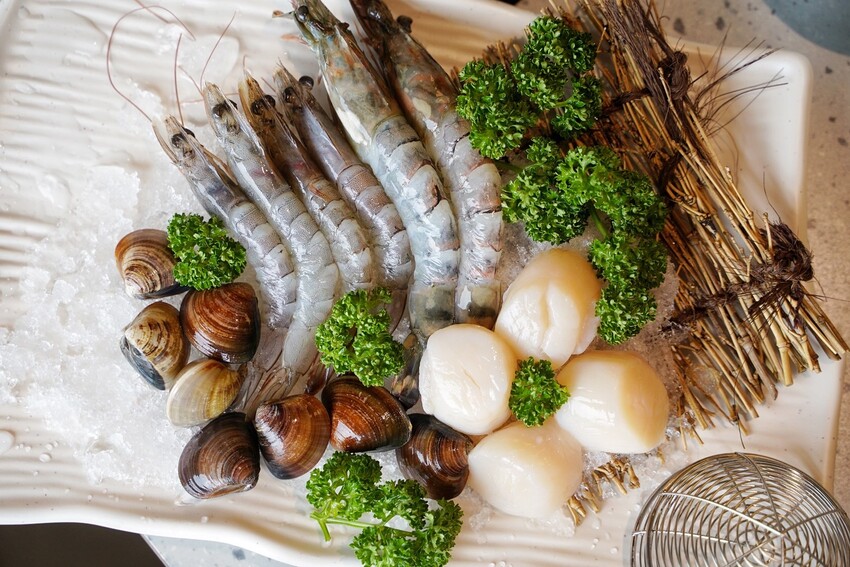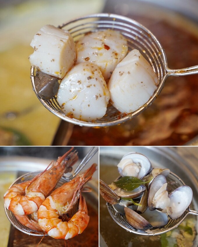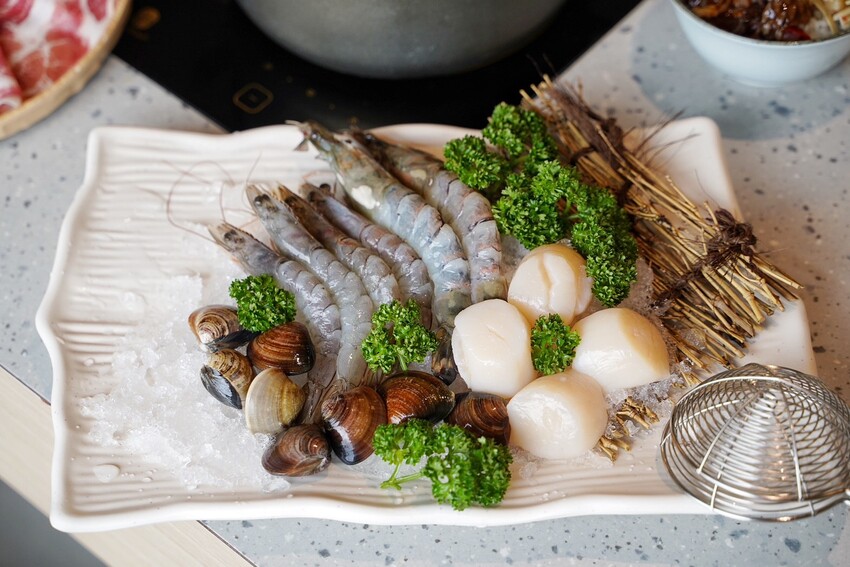 一定要加點蝦子蛤蜊組,每隻蝦都幫你去腸剝殼超貼心,煮好後只需動口爽爽吃,蛤蜊也是顆顆飽滿新鮮。碩大飽滿的「生食級干貝」稍微煮個八分熟就能享用那鮮甜軟嫩的口感,一口一顆好滿足!