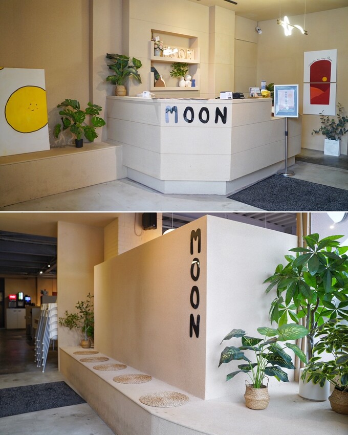 「月團圓雞湯火鍋頭份尚順店」一踏入大門就有個大大的月球吊燈,柔和的燈光加上米色系裝潢帶給人暖暖的溫馨感。