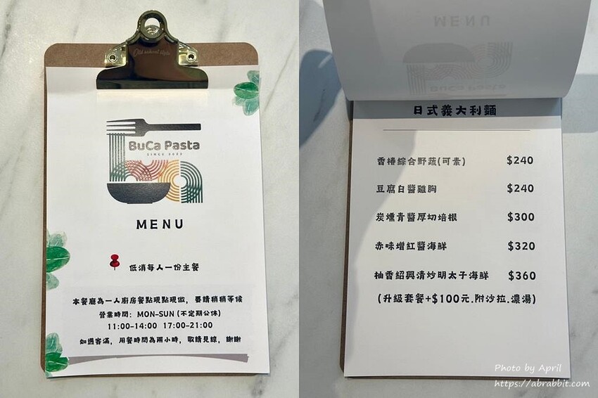 BUCA PASTA 菜單