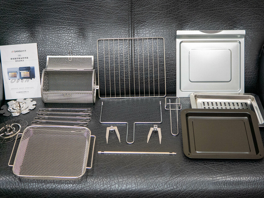10大全配配件:取盤夾、取叉夾、烤雞叉、網籃、層架、瀝油不銹鋼烤盤、烤盤、集屑盤、轉龍、串燒架