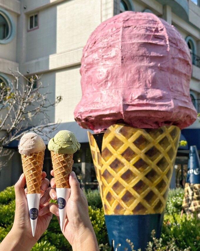「Nice Day義式冰淇淋」門口更有高達三公尺的巨無霸冰淇淋模型,讓你踏入門口就拍個不停!