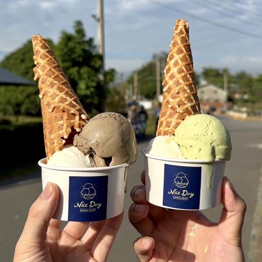 「Nice Day義式冰淇淋」可選擇杯裝或甜筒,當然推薦各位一定要選甜筒呀!因為是自己手工製作的,口感非常酥脆且蛋奶香氣十足。冰淇淋當天選了六種口味來試試,想吃清爽一點的,首推「旺林青」,入口是四季春茶香氣,再來是微酸的鳳梨果香,如此爽口的滋味會讓你跳脫對義式冰淇淋的印象。最有特色是「無花果」,淡雅清香,還有滿滿無花果籽在裡頭,用料很實在。