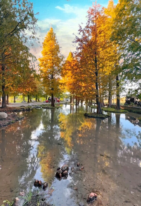 重點是有設置不少打卡點可以拍照,還拍得到超多水中倒影的落羽松,真的會殺光你的手機容量,拍個兩三個小時都不是問題!