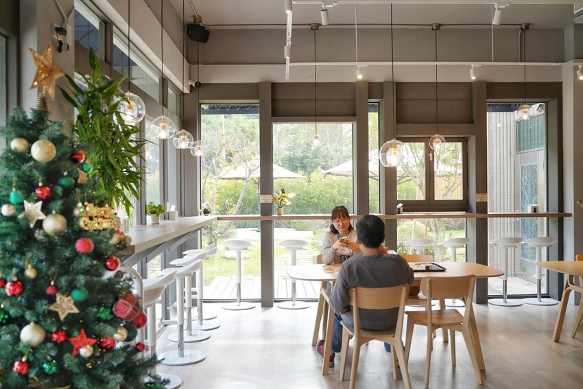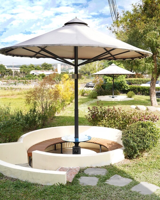 天氣好的話,很推薦坐戶外座位區,歐式陽傘圓形座位,享受泰安山腳下乾淨的空氣以及舒適的庭院風光。