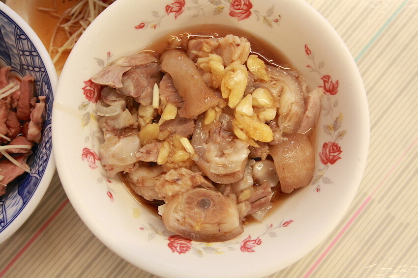 這碗豬腳份量足肥肉跟瘦肉各半,有淋上蒜頭末醬汁來提味。