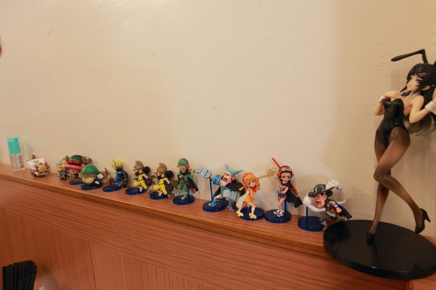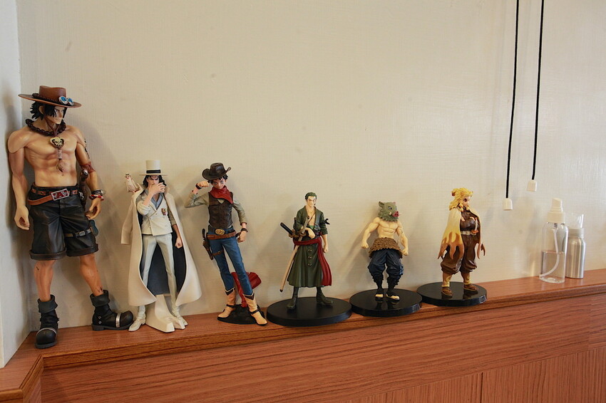 靠牆處放置日本漫畫人物的公仔供欣賞。