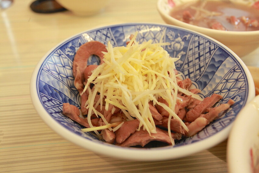 這碗麻油豬心川燙完直接淋上鋪上薑絲。