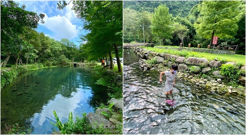 宜蘭免門票景點有免費停車場,這是一處天然湧泉水深約100公分,常年沁涼的18度湧泉,一共有三區玩水區,水中還有溜滑梯可以玩,一旁還有生態池,水質清透可以看見魚兒優游。這裡有設涼亭與廁所,池邊有種植落羽松,還有可愛水滴寶寶公仔超好拍!