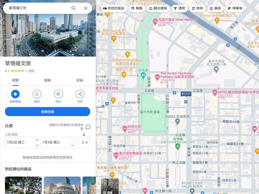 台中草悟道文旅位於台中市鬧區的草悟道,飯店本身沒有停車場,附近則是有停車場可以使用。停車的話,可以拿發票給飯店人員,有停車補助(須注意一下有上限)。
