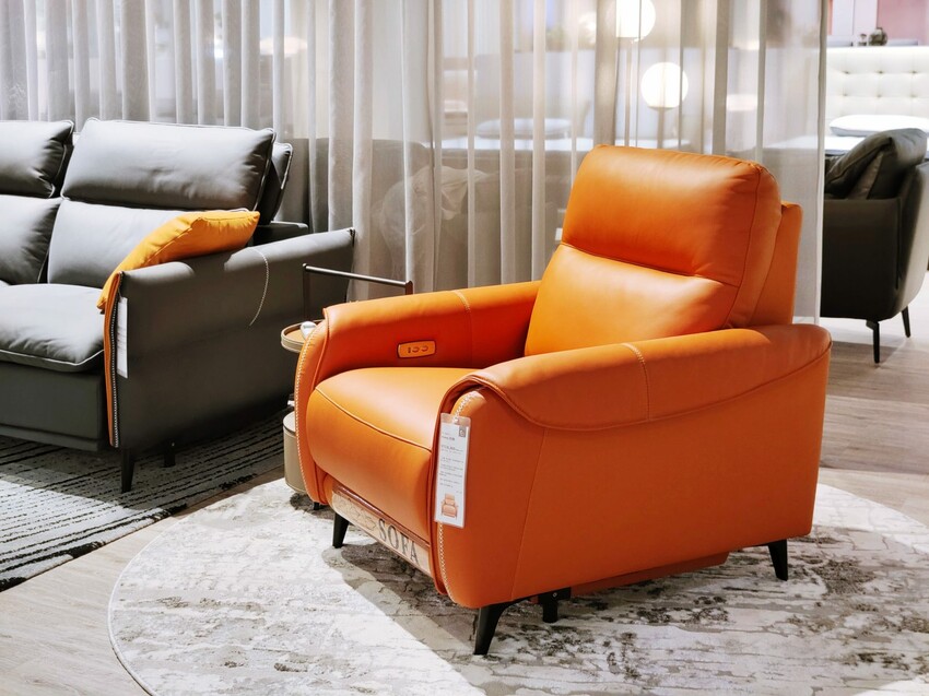 ▼Nimes 尼姆-單人電動椅很適合放在一人小宅,弧線飽滿加上愛馬仕橘,一擺就是焦點,擺在客廳、臥室、書房,隨時有一處可供小歇之用。