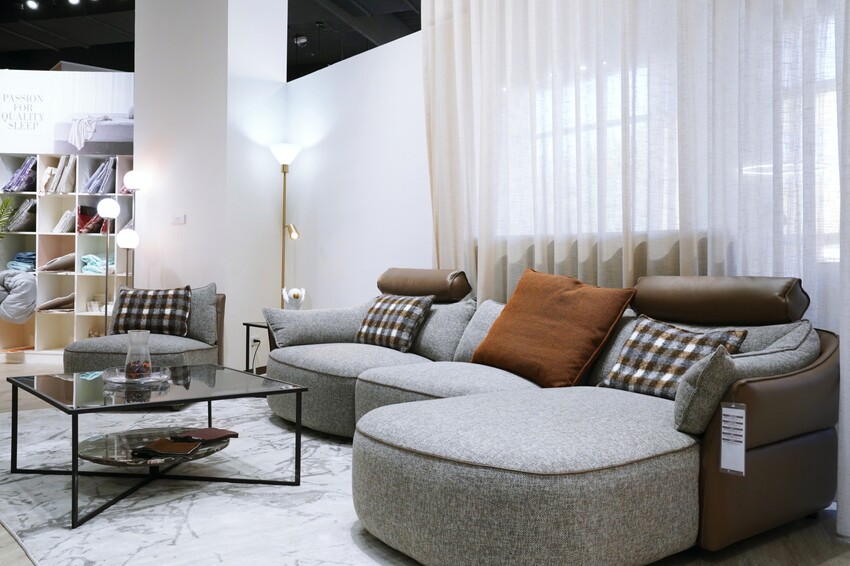 ▼新竹旗艦店的展售空間很大,繼續往內走,有更多的義式精品家具、義式經典沙發、義式床架可挑選,全國門市都是統一價格,享有售後服務,其中床架、床墊、沙發、電動按摩床都有「十年保用」,買一次的費用攤到十年的天數,算算很划算,換來十年的舒適度很值得。