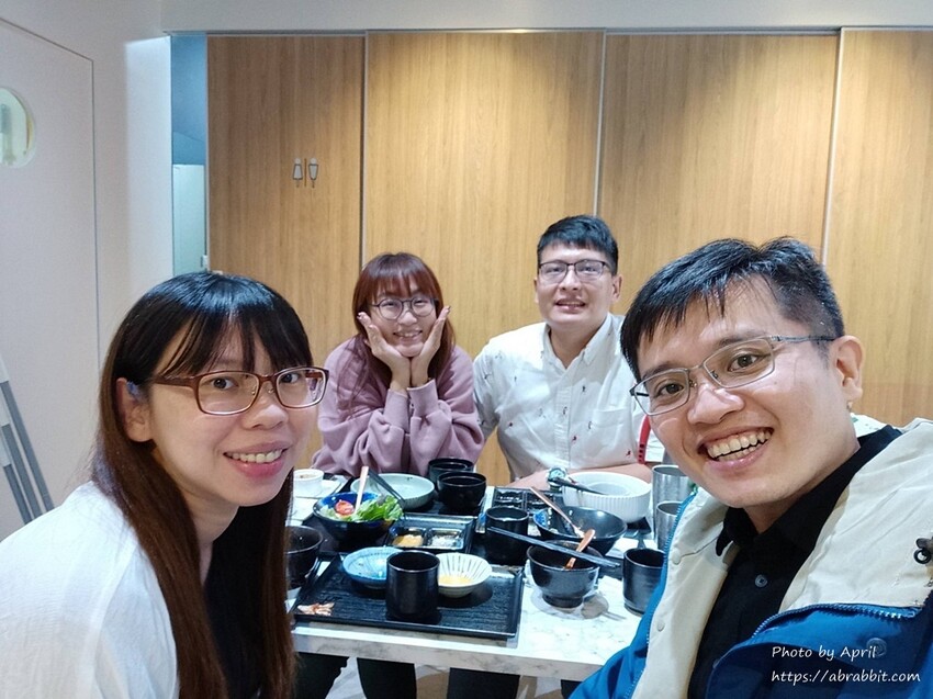 三種炸物表現都很不錯,外皮酥脆而且吃起來不油膩。特別一提的是中間那盤炸魚薯條,薯條切得樣子挺特別的,但不影響口感,吃起來都還不賴。最後還張我們當天的大合照,整體而言,我覺得這家丼飯還不錯吃,