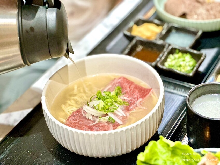 A5直火和牛燒肉丼麵,這肉片看起來鮮嫩欲滴,色澤有夠美,