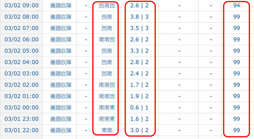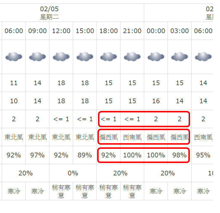 風速小(兩級以下)、濕度高(90%以上)、風向(西南風、南風、東南風、微弱北風為佳)
