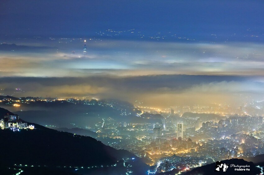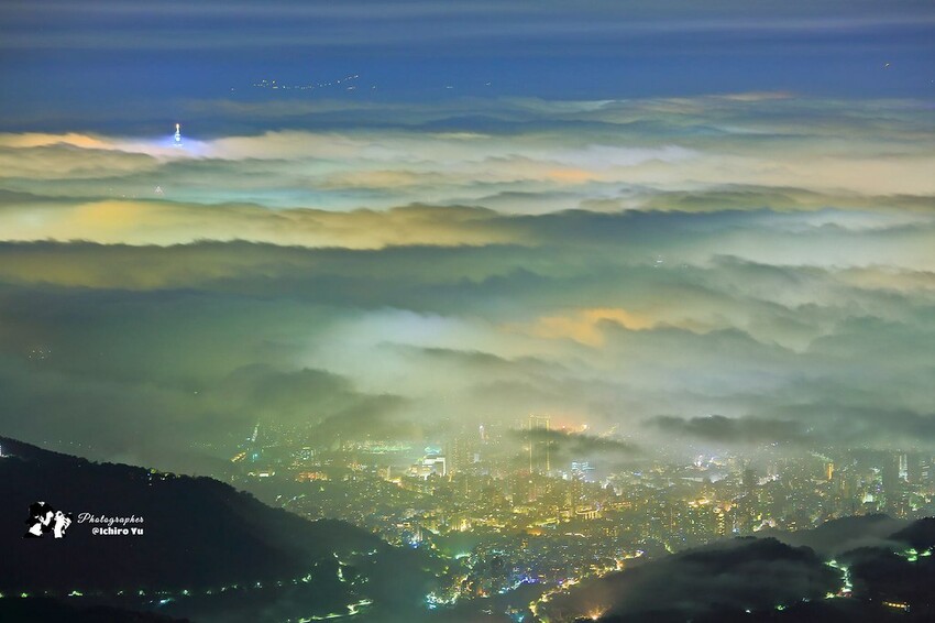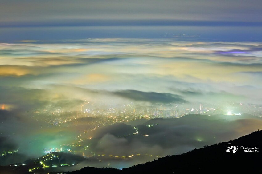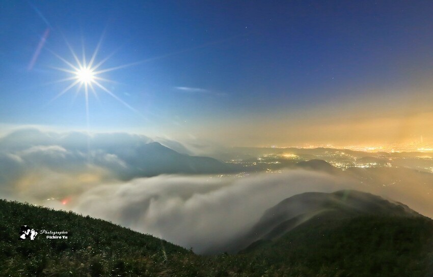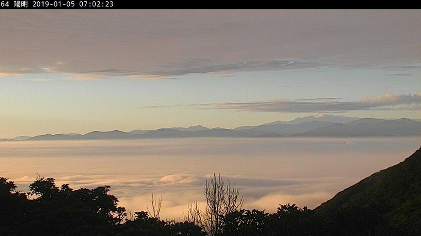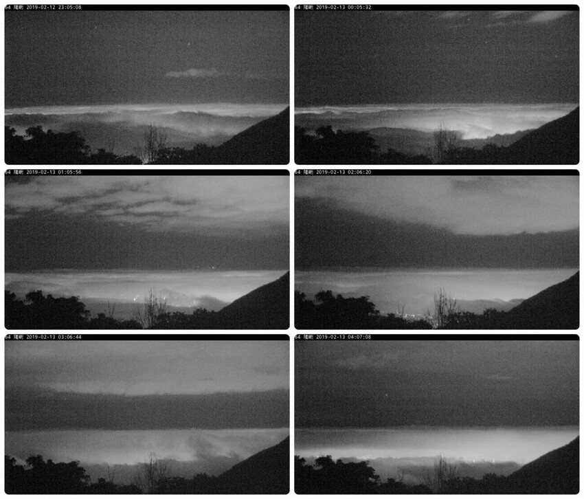 陽明山影像,則從11點初開始雲海湧入,直到早上