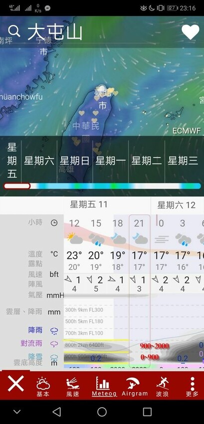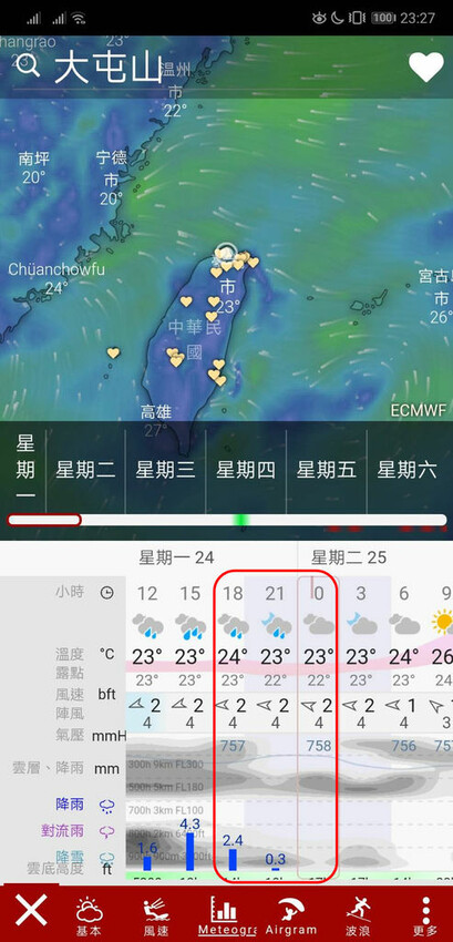 可觀看未來幾天的預報(天候、溫度、風力、雲高等等)