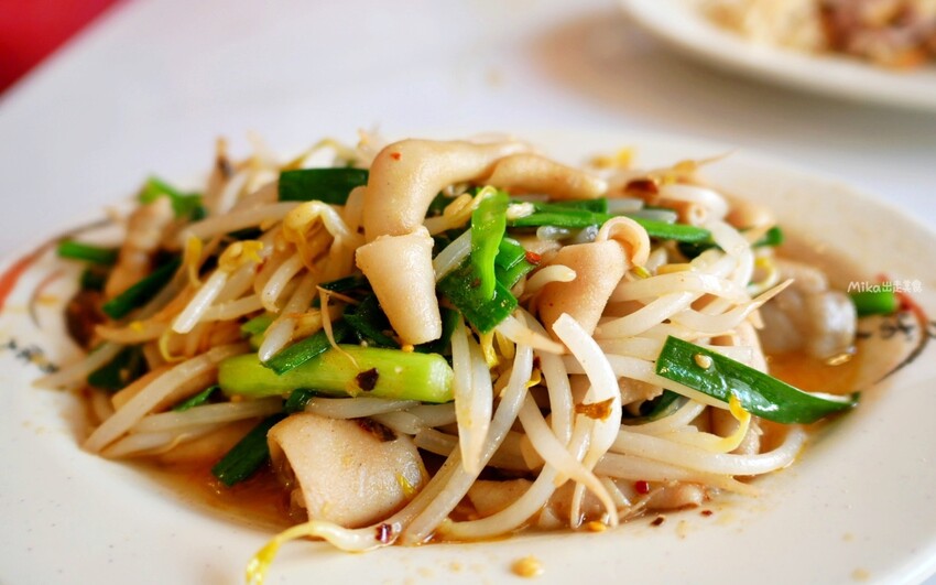 脆口的鵝腸搭配韭菜、豆芽菜一起拌炒,香辣帶脆很下飯。