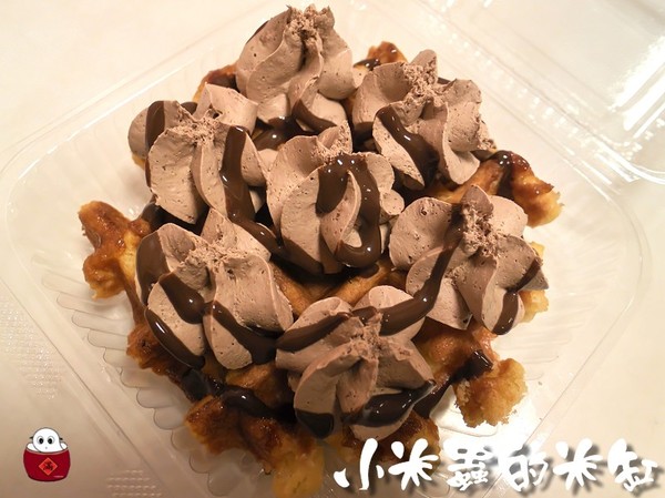 酥脆的鬆餅帶著QQ的咬勁,巧克力鮮奶油融化在嘴裡卻一點也不感到甜膩,反而有種甜甜的巧克力奶香,很柔和的味道
