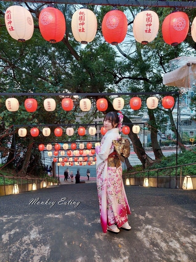 桃園神社也是日本境外唯一留存下來的日本神社,不少人會在這打卡拍照。桃園神社內也有提供和服、浴衣出租體驗拍攝,或是也可以像我們一樣自己帶服裝過去拍。