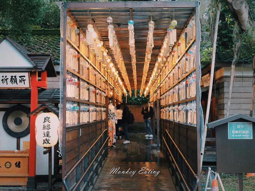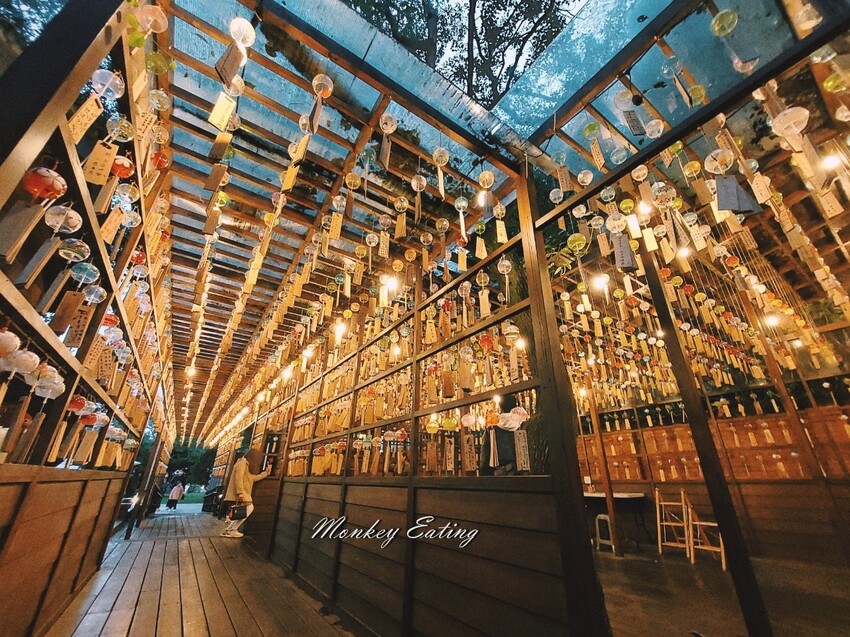 隨著燈光的引導,來到了祈福風鈴區,每個風鈴上的字卡,都寫上了滿滿的祝福與心願。透過長廊的延伸感,也能在這裡拍出好看的照片。