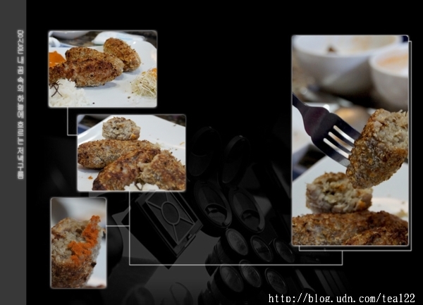 菜剛上桌,大家都被這恐龍蛋給吸引住了,好奇是研發之母,於是,拿起刀叉兵刃相見,原來,裡面是一顆水煮蛋,大家不約而同笑了。這很像台式炸蛋,不同於一個用油炸,一個是火烤,而後者,少了炸油又烤去了多餘的豬油,較為健康。外皮的絞肉也是只有加入鹽和胡椒、孜然。我覺得,俄羅斯料理真的比較天然,但是,技巧一點不簡單,因為不加人工調味料,所以,全看主廚廚藝及食材的新鮮,決定食物的好吃與否。