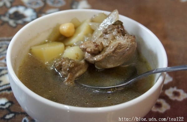 山蓮子湯:山蓮子、洋蔥、馬鈴薯、肉,湯面看似很油,喝起來卻一點不膩口。