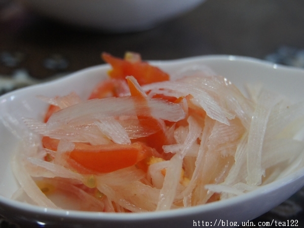 天然沙拉:洋蔥、蕃茄以鹽拿水,吃起來清爽可口。