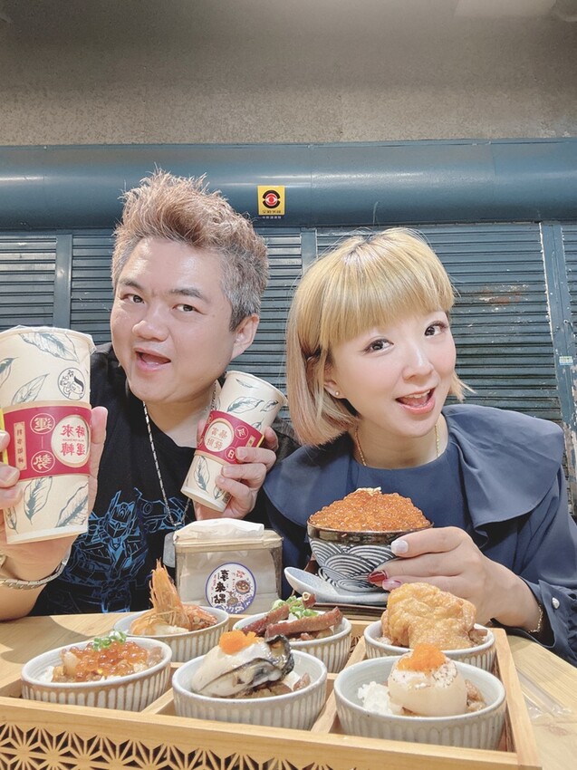 迷你版滷肉飯搭配唐揚雞、鮭魚卵、鮮蚵、叉燒、干貝、蝦子,組合成六宮格套餐(439元)