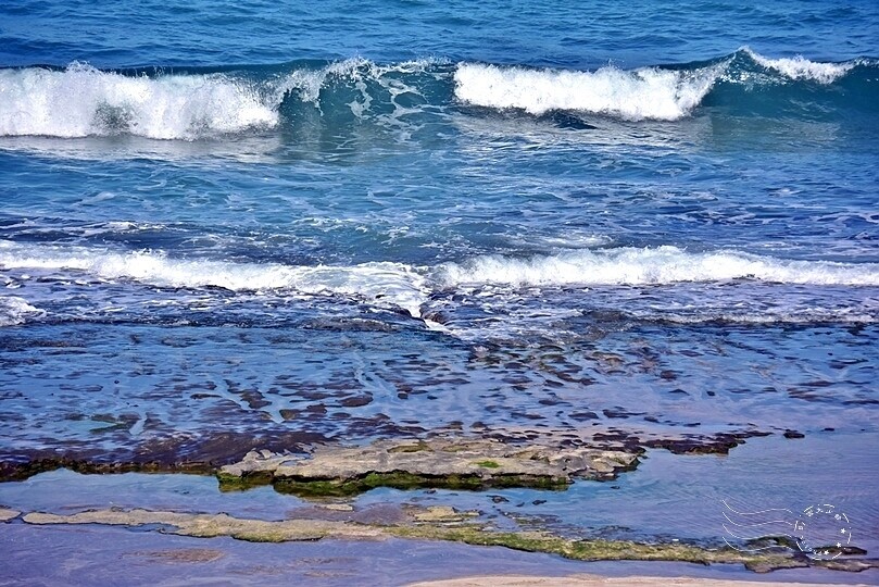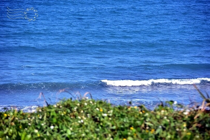 ↓浪濤拍岸,碧海白沙間夾雜著翠綠,遊人三兩,多麼美麗的海岸線啊!