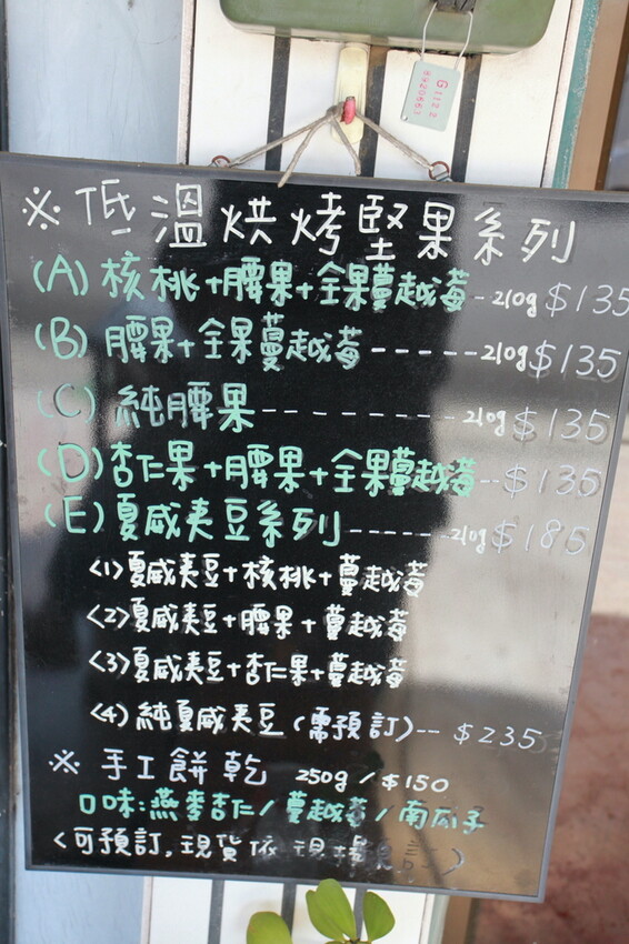 首先介紹手寫菜單供各位好友分享,上面有寫低溫烘烤核桃定價供參考。