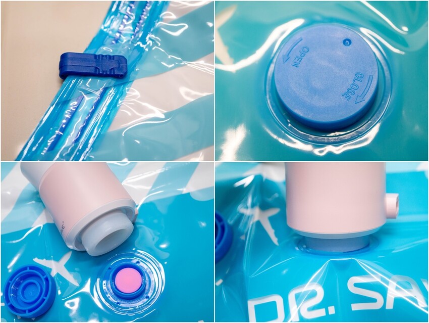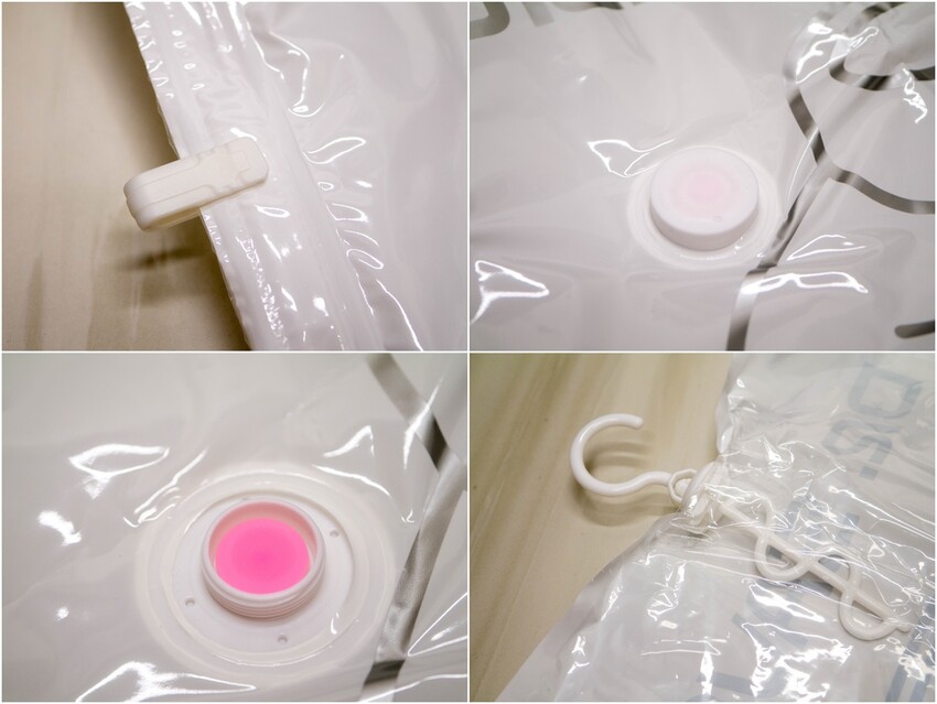 使用方式也很簡單,拉開側邊夾鍊放入衣物,接著密封起來,每一個袋子都有附上夾鍊輔助的小配件,用小配件以滑動的方式就可以更輕鬆的將袋子密封
