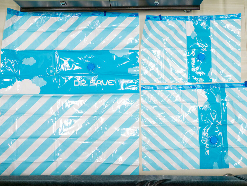 真空壓縮袋有提供三種尺寸,可以依自身情境搭配使用