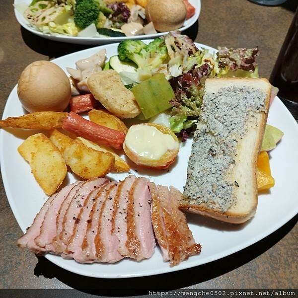 友人點了鴨胸口味的早午餐拼盤,我覺得鴨胸非常好吃,鹹度剛好,鴨胸嫩度也好OK,比鹹派好吃。