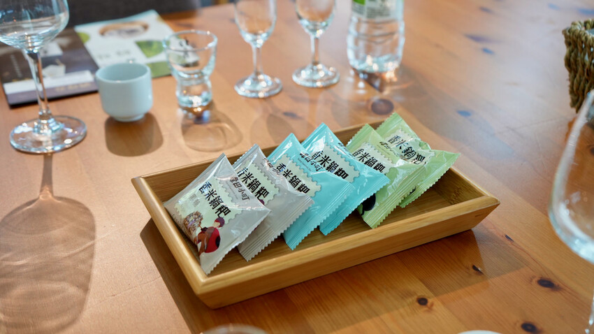 今天最期待的就是霧峰農會酒莊的「清酒品酒會」,店員會很仔細的介紹清酒製作過程,對清酒有興趣的朋友千萬不能錯過,這是深入瞭解的好機會,介紹完後會提供初霧系列6款酒,每一款都可以喝到,並且搭配農會推出的甜點酒粕香米捲或桂圓巧克力酥,最後還會提供一只初霧清酒杯,帶回家做紀念喔!