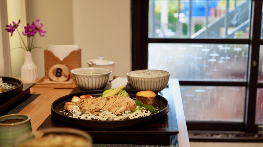 套餐擺盤很用心,雞胸肉不乾柴調味很好吃,健康無負擔。
