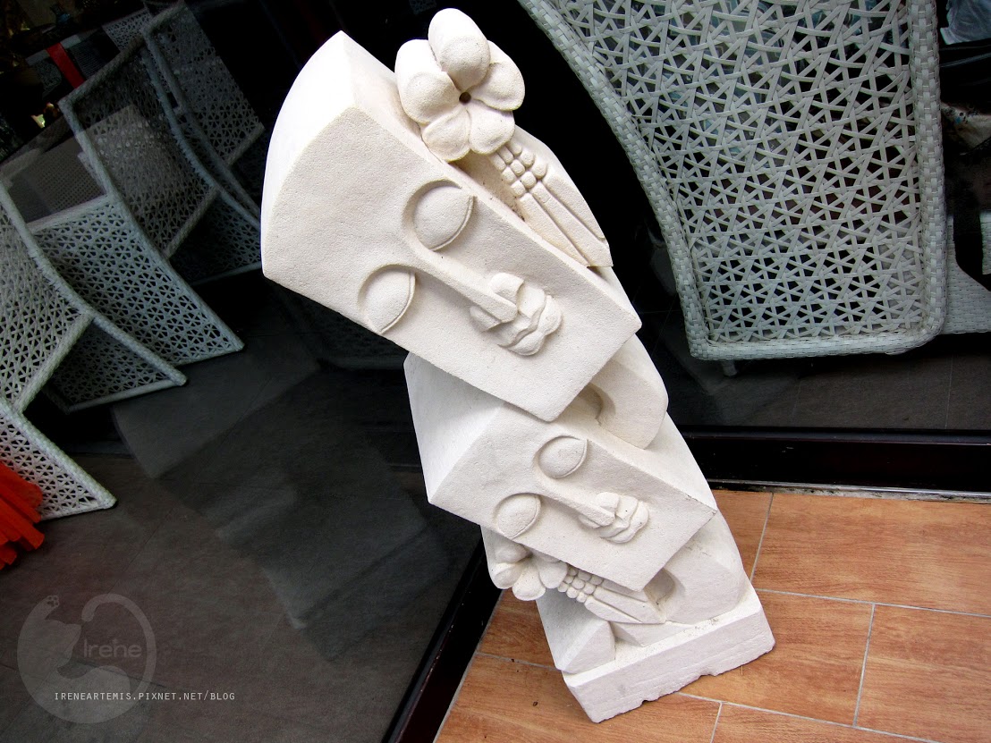 都還沒有進到大廳就被樓梯的二側可愛的小雕像吸引了,仔細看一下…,左側的小人有別紅花,髮型也不太相同,看來左邊的是女生唷!