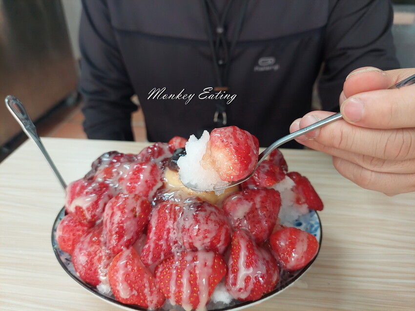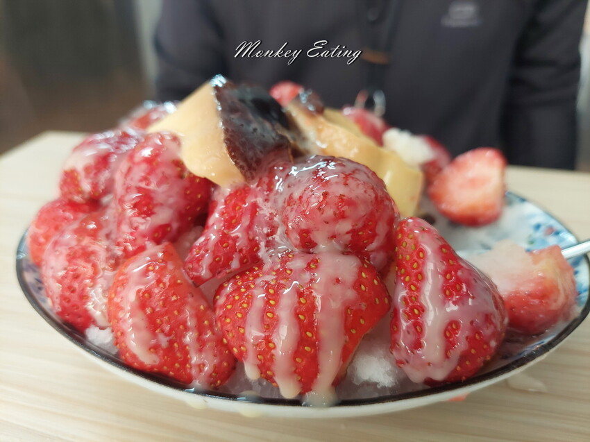 大湖草莓又香又甜,搭配煉乳跟清冰真是好滋味。