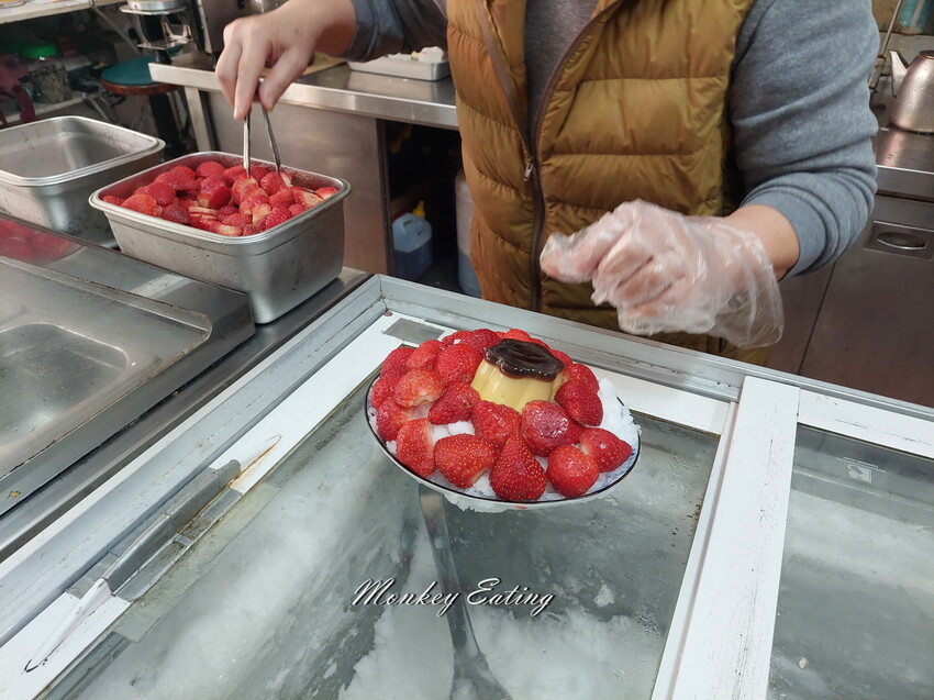 草莓季到了,在網路上看到元成冰菓室他們家推出草莓布丁牛奶冰,瞬間被照片吸引,現場看老闆娘製作真的是放上滿滿的大湖草莓,草莓新鮮又很大顆,口水都快流下來。