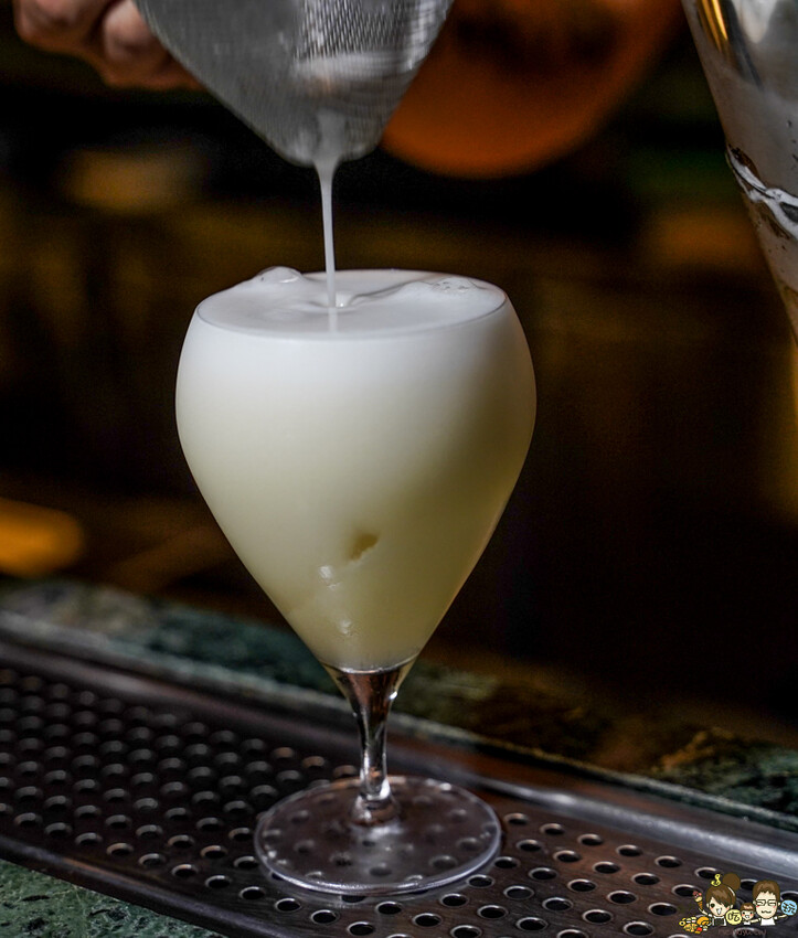 被翻覆過濾的整杯調酒看起來清透乾淨,喝起來充滿鳳梨氣息卻無纖維無雜質