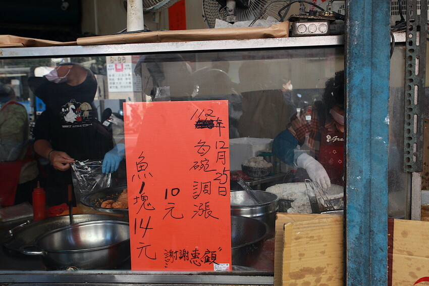 料理台旁有位婦人負責油炸土魠魚肉,小高發現這土魠魚很大塊且裹粉比較厚實。