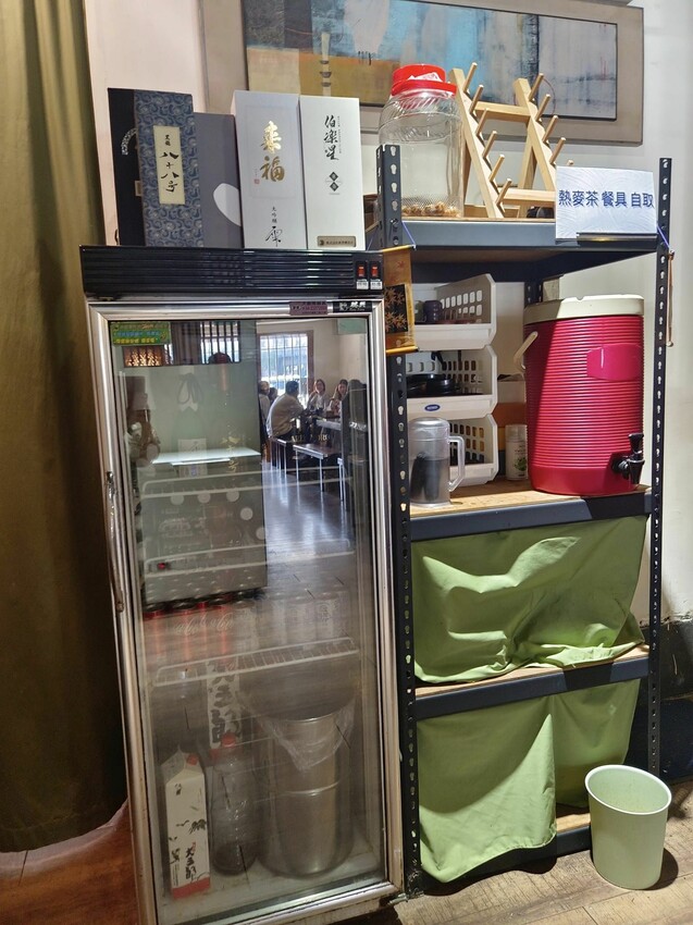 餐廳最裡面是熱麥茶和餐具自取區,不過左邊冰箱內的飲料就要告訴工作人員了