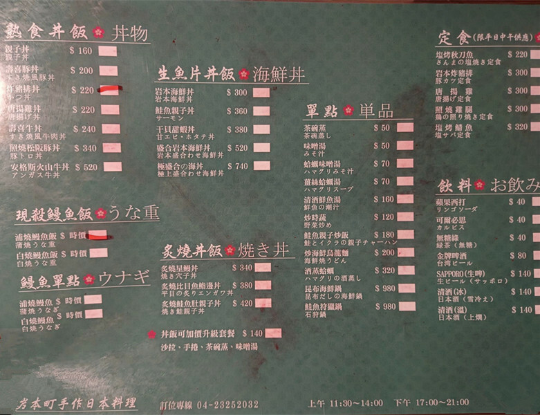岩本町供應的菜色還蠻多樣化的,這一面菜單主要是丼飯,鰻魚飯和定食🍱