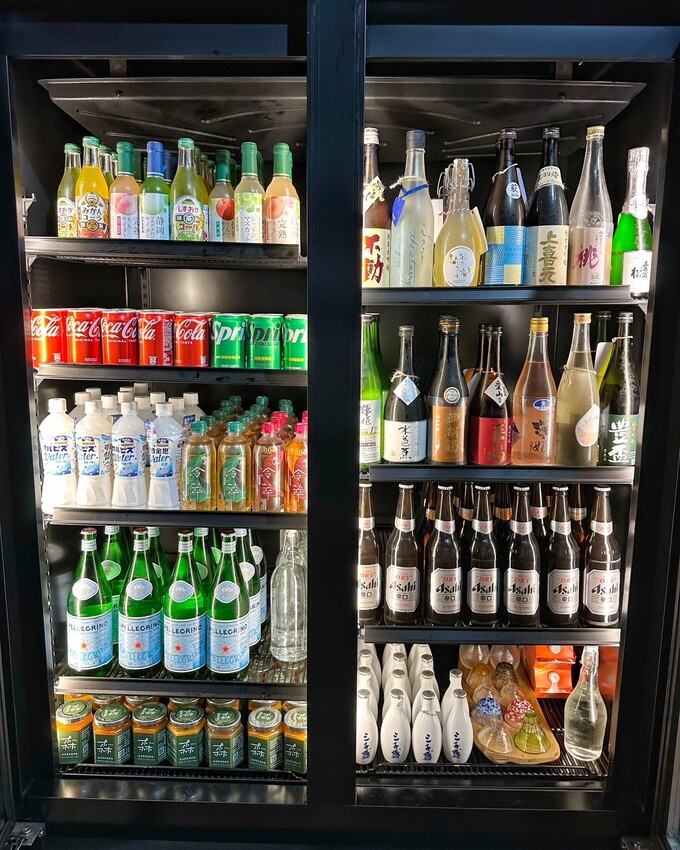 「森手串」內用有提供免費飲用水,也有販售各式進口日本清酒、利口酒、汽水等等,雖是小小一間店,但老闆的選酒品味真的很有水準,很多都是高級餐廳會出現的清酒品牌。