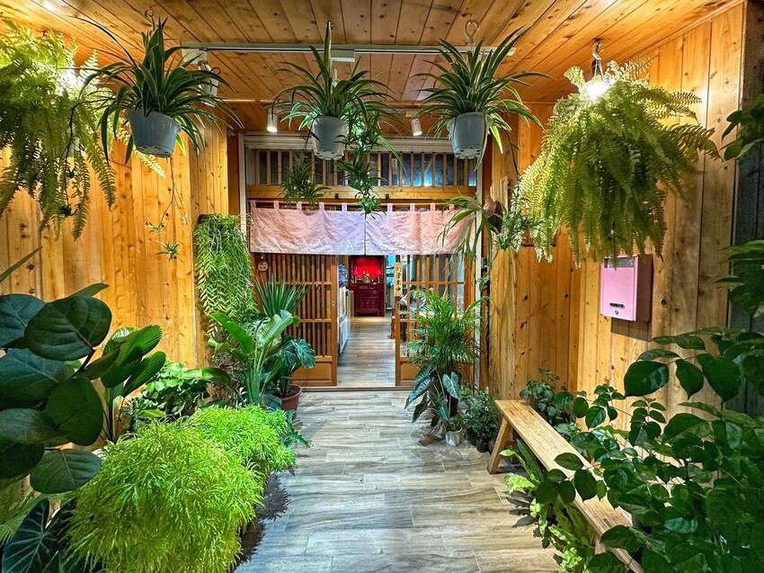 「森手串」店內店外都呈現出木質調日式風格,門口還擺放不少觀葉植物,看上去更文青!