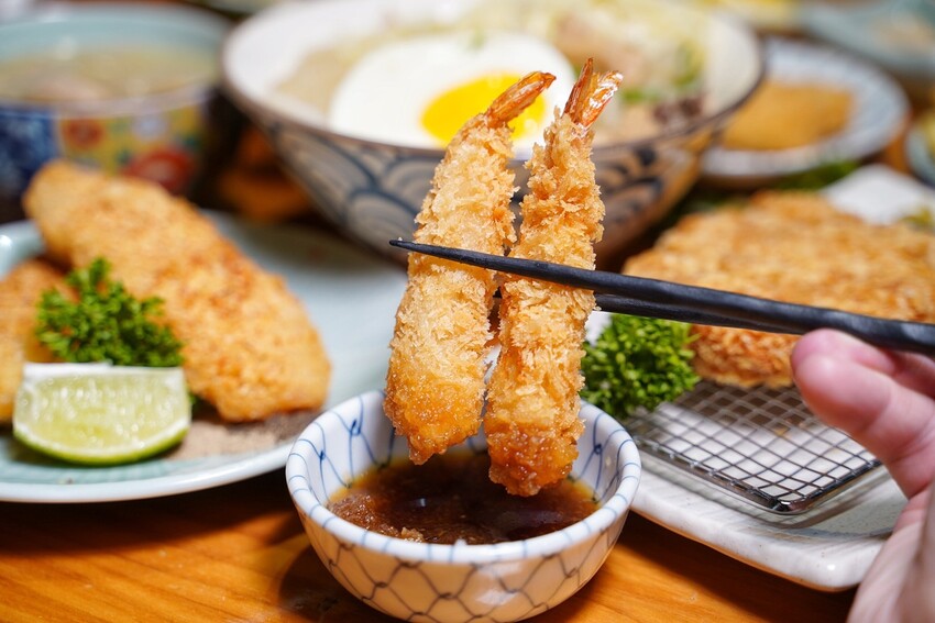 「炸蝦天婦羅」一份有四尾,麵衣厚薄度適中,外皮與蝦子不會分離這點很加分,沾點蘿蔔泥柴魚醬汁一起吃最對味。