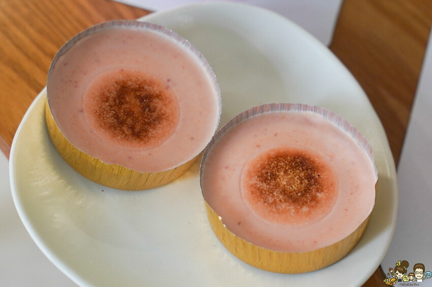 底部的酥脆度,帶有酸甜與甜味的草莓果泥與綿滑烤布蕾,抿在嘴裡細膩滋味