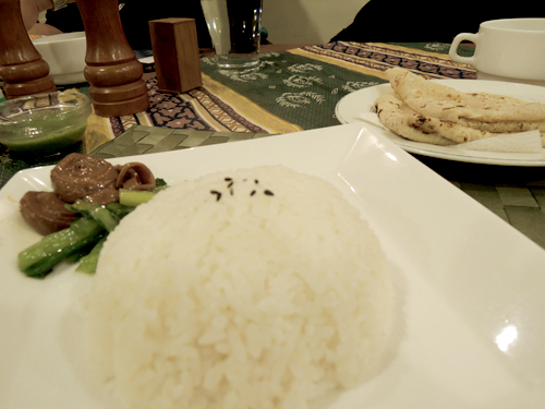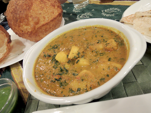 終於大家的主食咖哩與印度餅陸續上桌,我點的素食口味是『洋芋菠菜』,是屬於比較偏小辣的咖哩醬,香濃伴隨微辛辣非常好吃,但是辣的後勁頗強,我吃快一半時便已經開始額頭冒汗。奪愛的咖哩無論是拌飯吃,或是拿印度麥餅與印度Q餅沾食,都非常美味。而且喜歡吃印度餅的人一定得要點招牌的『印度麥餅』,狀似氣球的餅身非常討喜,也是印度餅類當中最特殊的一種,所以大家一定要試看看,光是外型就很殺大家底片了。